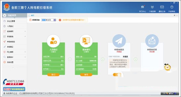浙江金税三期个人所得税扣缴系统,又简称之为浙江个人所得税扣缴系统,是受国家税务总局委托,税友软件集团股份有限公司开发的一款便捷报税工具,专为浙江省广大纳税人使用。企业通过该系统录入个税申报信息,自动计税并生成申报表,通过网络发送或者介质大厅报送到税务局端的网上申报系统,局端管理系统对信息进行分析受理反馈,同时将扣缴信息交地税核心征管系统进行扣款,完成个税申报纳税过程。