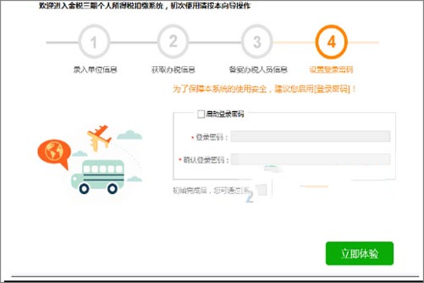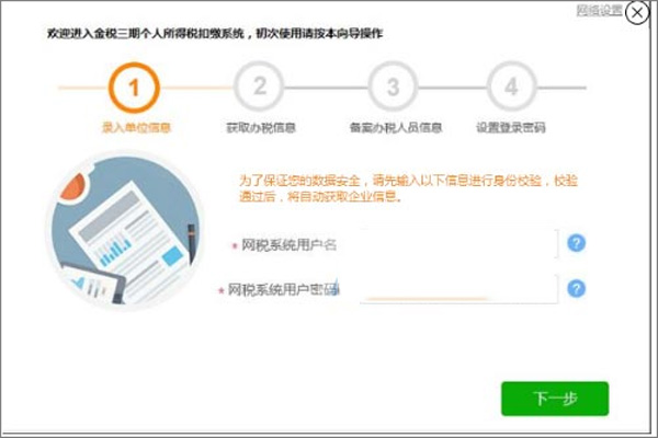双击桌面上生成好的浙江金税三期个人所得税扣缴系统图标,打开软件,初次登录时自动弹出初始化向导,帮助您完成单位信息的设置。