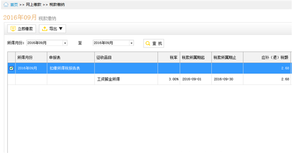 2) 勾选需要缴纳税款的项目,点击“立即缴款”