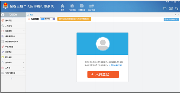 4) 点击【登录】,进入金税三期个人所得税扣缴系统,如下图。