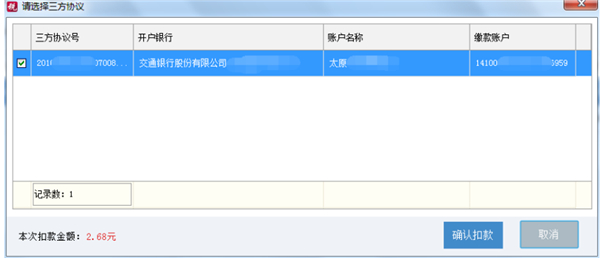 3) 核对三方协议信息,确定无误后,点击“确认扣款”,完成扣款