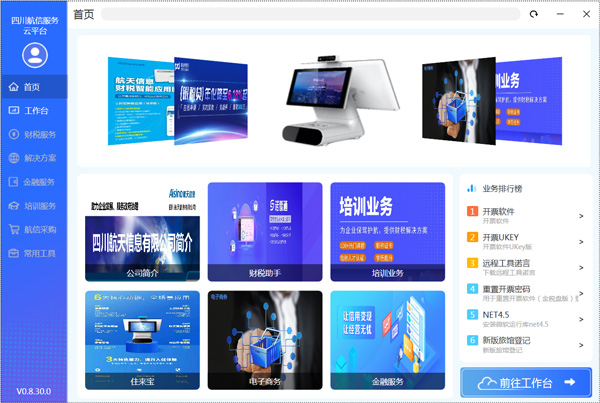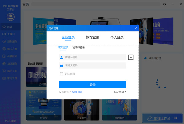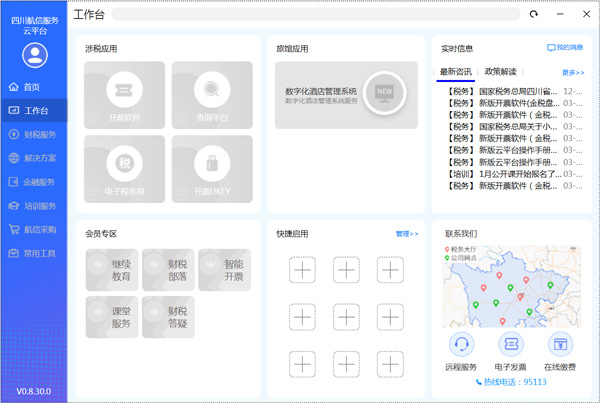 四川航信服务云平台新版本是一款功能强大的综合财务服务管理软件,主要是基于“云计算”原理而打造的,不仅可以帮助用户轻松完成开票、申报、发票管理等工作,还可以专享开票打印一键定位、开票数据云备份、数据一键恢复等功能,平台里点击一键求助就可以直接享受远程服务,十分的方便。软件还通过物联网、云计算、大数据、人工智能、GIS等技术手段,为省、市、县及各大粮食集团建设粮食智能监管平台,通过电子政务外网、互联网实现平台与智能粮库系统互联互通,以可视化方式远程监管地方储备粮,实现各级粮食主管部门对本单位下辖库点的粮食收购、销售等业务全流程监管,同时满足用户各类业务办公需求。另外,新版四川航信服务云平台还有培训功能,能支持财税认证考试培训,提供多项考证服务,为其制定详细的学习计划、舒适的线上学习平台、优质的一对一助教服务、拒绝题海战术,高效归纳,助力每位学员高分攻关,有需要的用户快来下载吧。