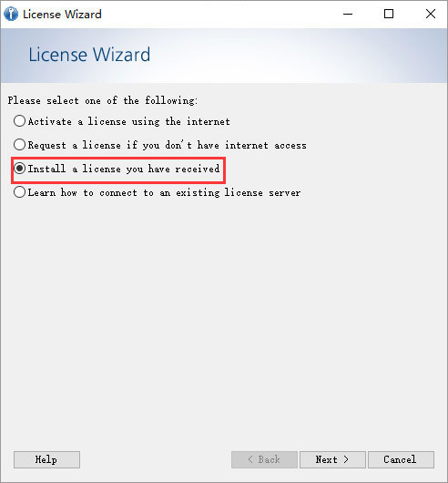 8、然后选择Install a license you have received点击next,导入许可文件;
