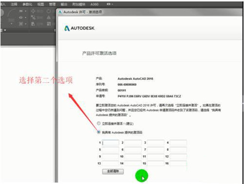 5、接下来就会出现autocad2016激活码,我们复制激活码进入激活输入框内;