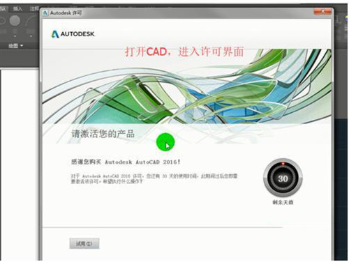 1、首先将安装的cad2016打开,进入许可界面,点击下方的激活按钮,