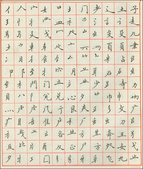 2、要想写好一个字,先把偏旁部首写好、写正确无疑是重要的。而且,重要的不仅仅是把偏旁部首写好,而是要根据这个字独有的形体特征,去有意识地留有空余之处,这就是手下虽然没有写,但心中却有一个完整的字。