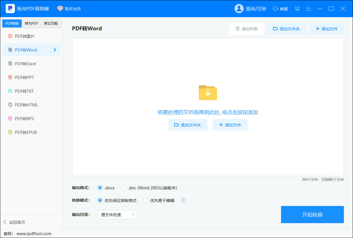 2、点击添加文件, 把需要转换成Word的PDF文件添加到软件转换框里。可添加多个PDF文件批量转换格式,