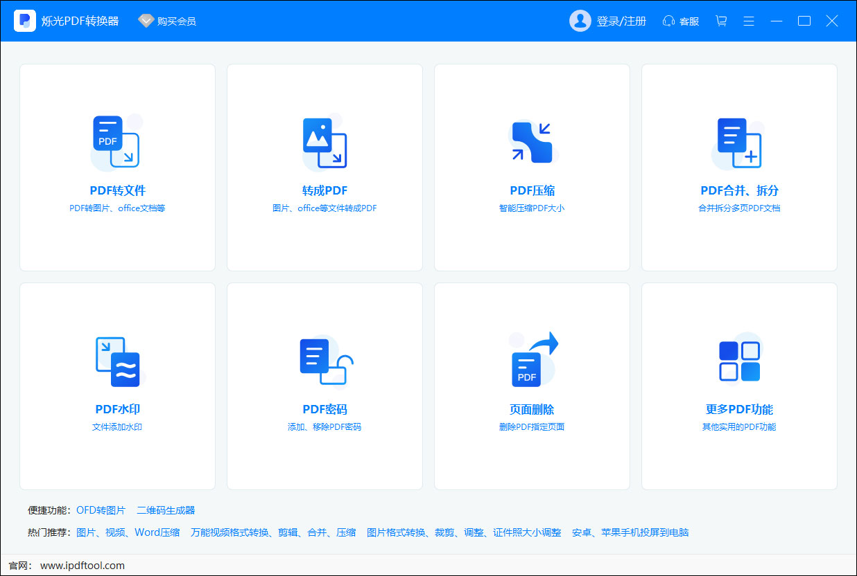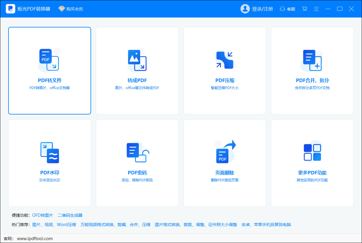 烁光pdf转换器官方版是一款专业、高效、安全的PDF文件转换工具,支持PDF与Word、Excel、PPT、图片等等格式的相互转换,有PDF合并,PDF分割,PDF加密,PDF解密,提取PDF中的图片等功能,旨在为用户提供一套完整的PDF文件解决方案。
