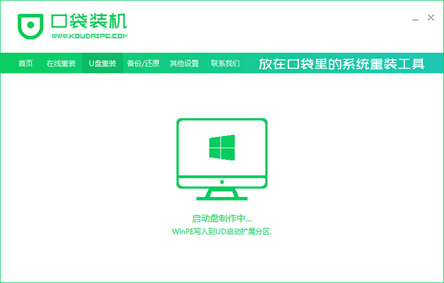 1、下载安装口袋装机软件后,将u盘插入电脑点击u盘重装系统。