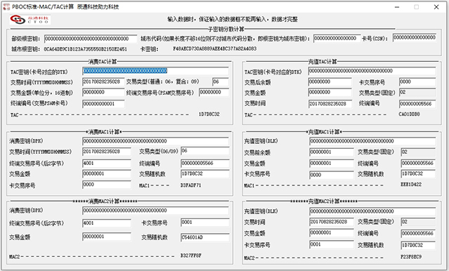 用户在需要计算的项目中输入卡密钥和对应的交易数据,当数据输入完整后,将自动计算结果,并自动填入结果项中