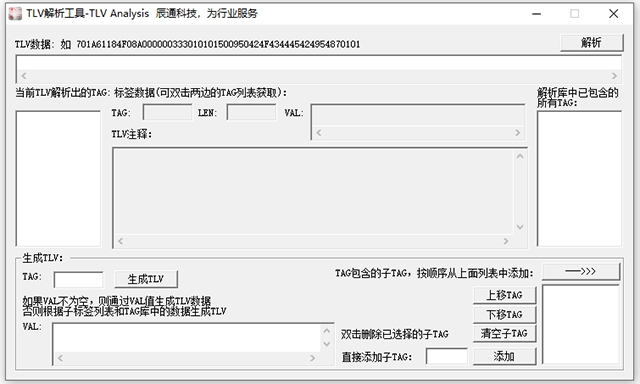 通卡行业常用的 TLV 数据解析工具,可以进行解析并提供 TAG 用途注释,在工具下方可以自行组织生成 TLV 数据