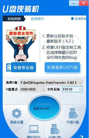 U盘侠装机全称又叫做U盘侠U盘启动盘制作工具,是一款十分优秀的U盘启动盘软件,该软件采用了最新的封装技术,能够支持几乎所有的u盘,支持uefi版和专业版,支持一盘两用智能装机,是电脑维护人员最好的U盘装系统软件。