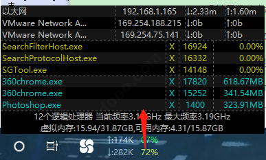 4、并左边多处了一个内存和网速显示;