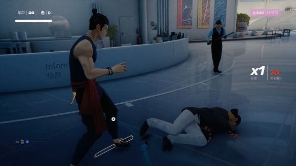 进入美术馆后先会遇到两个安保人员,迅速解决掉一个后捡起刀解决另一个。