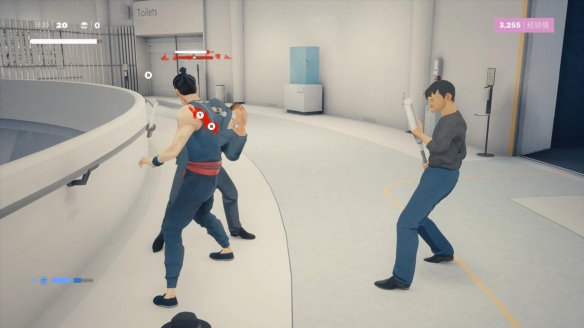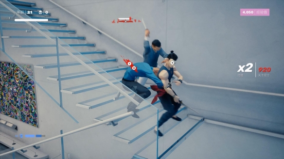 开门后进入展厅,两名日本装扮的没有什么特殊攻击上段闪躲即可规避,注意拉开二人的距离不要被连续攻击。