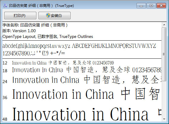 印品仿宋简纤细字体安装教程