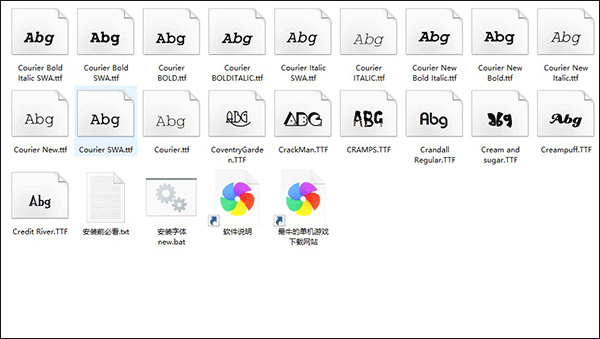 首先我们把字体下载下来,解压后打开文件夹就可以看见我们的字体了。
