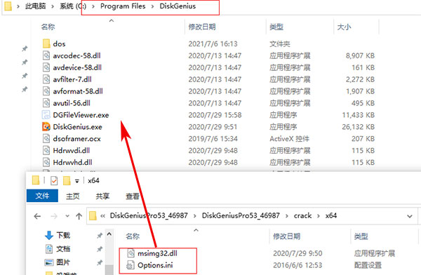 6、将crack文件夹下破解文件全部复制到源程序安装目录C:\Program Files\DiskGenius下