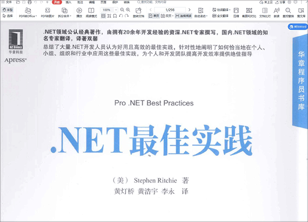 《.NET最佳实践》是一本由经验丰富的美国.NET专家史蒂芬·里奇撰写的专业书籍,内容涵盖了.NET开发领域的各种最佳实践。书中不仅总结了大量实用的开发技巧,还详细讲解了如何在个人、团队和组织中应用这些实践,帮助开发者提升效率。
