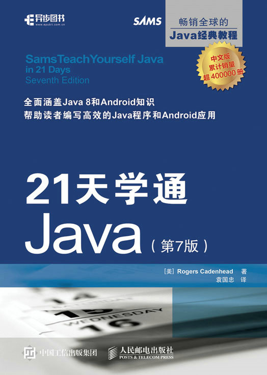 21天学通java第7版是一本Java语言程序设计畅销入门教程,由罗格斯·卡登海德编著。本书内容丰富翔实,只需21天的时间,便可让读者具备使用Java开发两种程序的知识和技能:运行在计算机中的应用程序以及运行在Android手机和平板电脑中的应用。全书针对Java 8进行了全面更新,旨在为读者讲解Java相关的知识,以及如何使用Java创建能在任何计算环境中运行的程序和Android app。学完本书之后,读者将全面掌握Java和Java类库,适用于java新手们下载阅读学习。