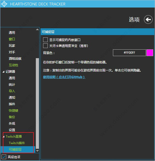 4、这里可以设置hdt的直播捕捉窗口选项,打开之后使用hdt新建一个窗口源,然后把游戏源捕捉炉石放在下面就行;