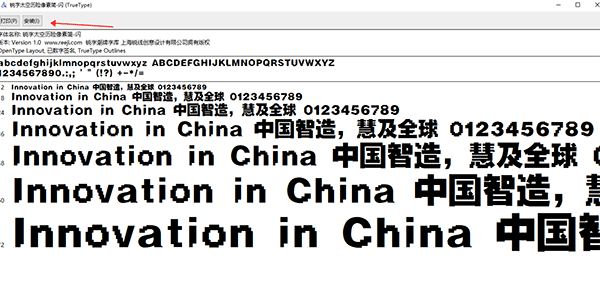 2、双击字体文件,在打开的字体文件界面上点击最上方的“安装”按钮,就可以将该字体安装到系统中