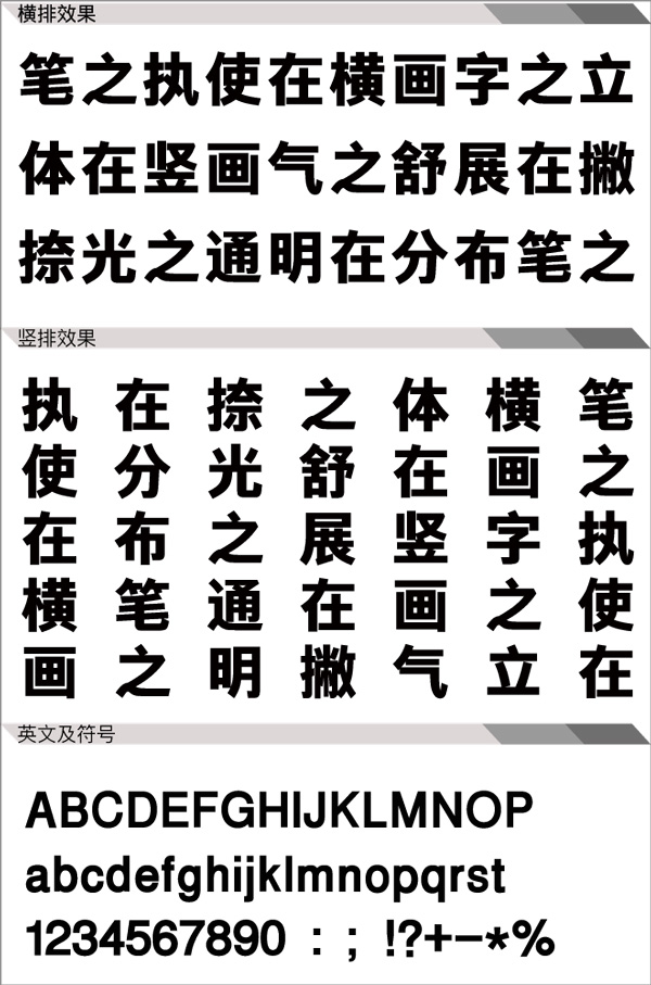 腾祥嘉丽粗黑简体字体风格采用横竖笔画无衬线装饰的设计,融入英文设计元素。字型端正,重心平稳,布白均匀。笔画粗壮,简洁、时尚、醒目。此款字体为腾祥嘉丽黑体系列粗体一款,文字整体设计端正大方、字体字形清晰可见,适用于文章的标题或者正文,大标题、户外广告、大型招贴广告、包装类设计用字等等。