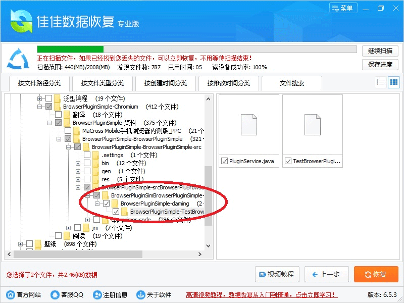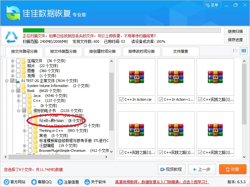 3、需要恢复的文件的全路径太长。Windows的文件全路径不能超过255个字符,恢复的时候,我们软件会创建目录,并把所有文件恢复到创建的目录里面。比如,用户选择恢复到桌面,我们会创建并恢复文件到“C:\Users\用户名\Desktop\佳佳恢复的文件”里,恢复的部分文件的全路径可能超过255个,导致创建文件失败。
