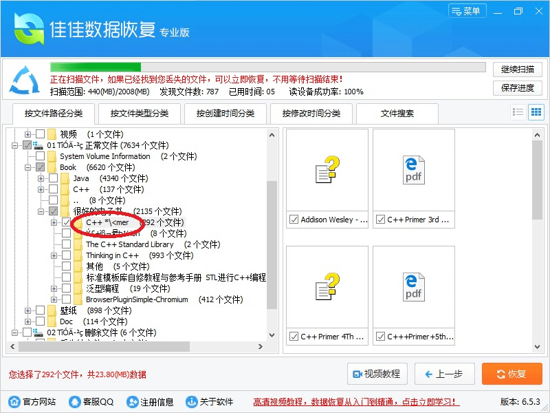软件的一大特点是边扫描边显示,用户可以随时恢复找到的数据,而无需等待整个扫描过程完成。它还支持多种分类方式,比如按目录、文件类型或时间分类,让找文件变得更方便。对于一些常见问题,比如文件名不合法或路径过长,软件也提供了相应的解决方法。