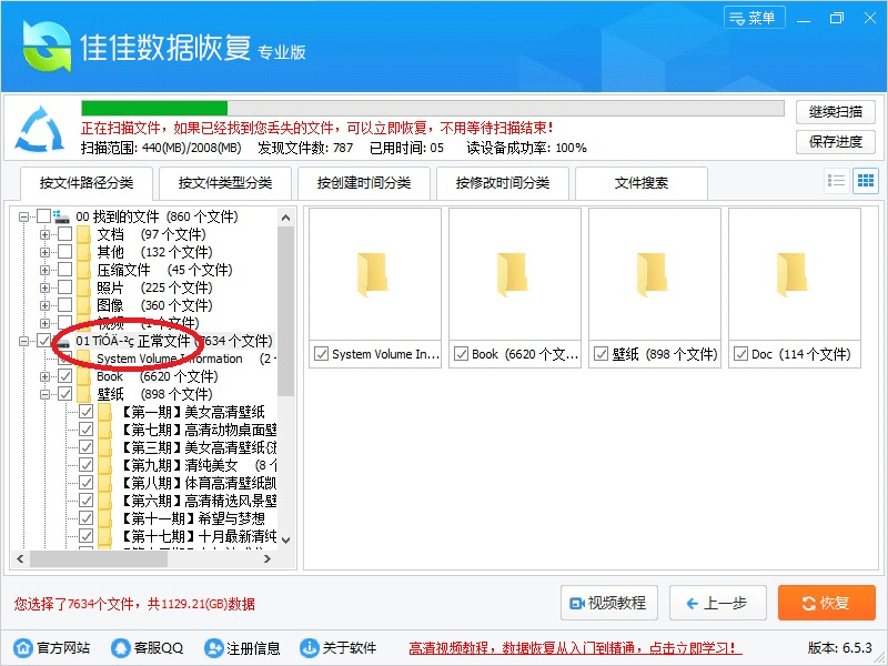 3、边扫描边显示,找到数据即可恢复,不用等扫描完成。