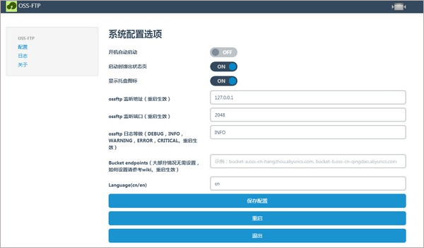 1、FTP服务器地址, 即运行ossftp工具的地址,一般填 127.0.0.1 即可。