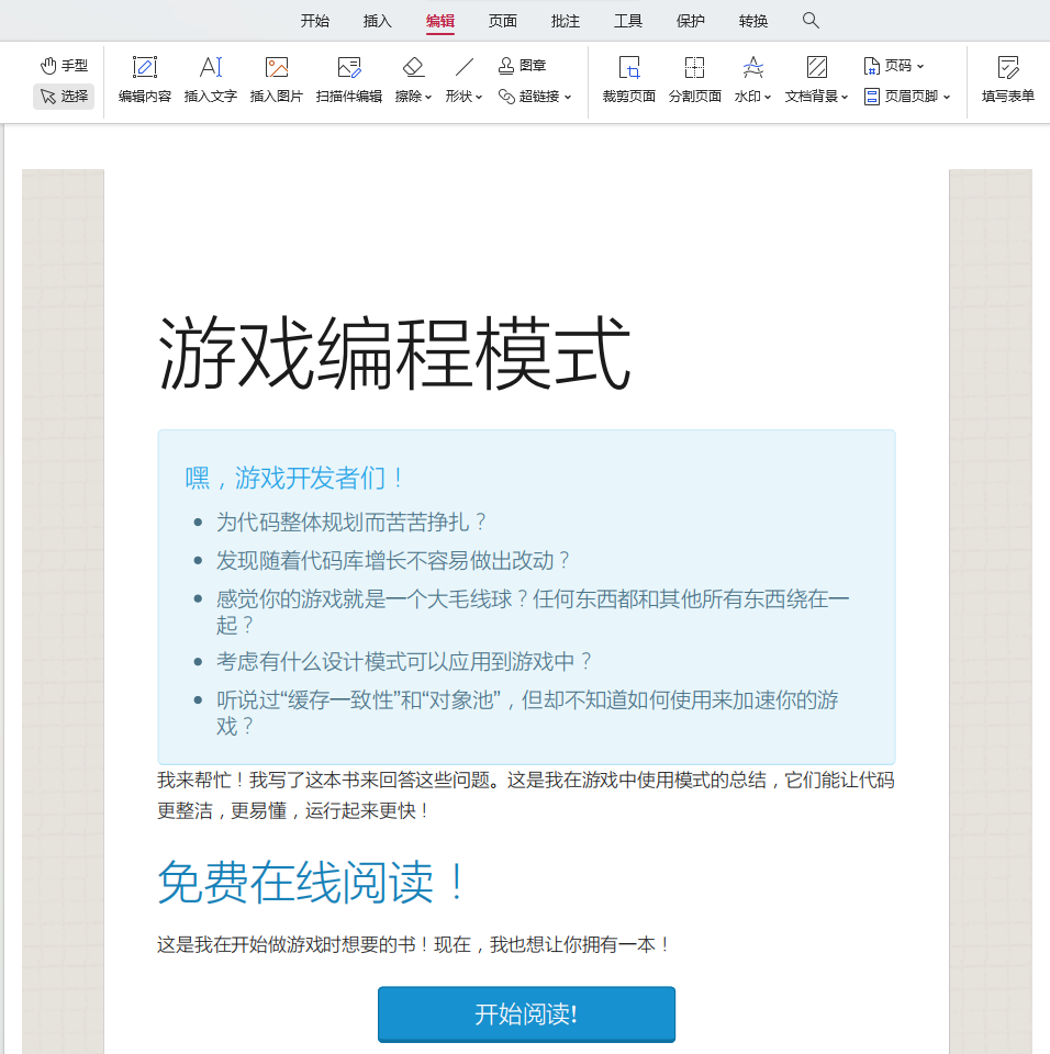 这本书内容丰富,适合游戏开发者深入学习设计模式和优化技巧。建议读者按章节逐步学习,理解每个模式的原理和应用场景,并在实际项目中实践应用。