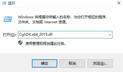 然后打开“开始-运行-输入CgSDK.x64_2015.dll”,回车即可解决错误提示。