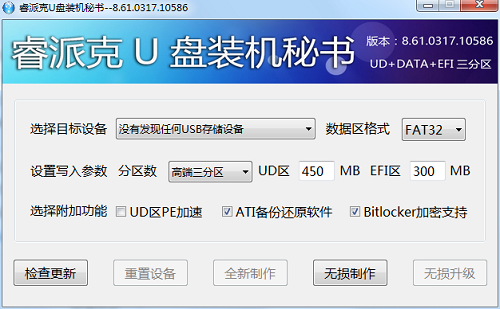 1、软件下载完成后,点击睿派克U盘装机秘书 v8.61.0317.10586即可打开软件。