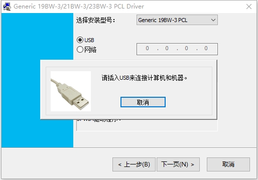 2、中间步骤中需要您指定打印机型号和连接方式,注意要选择正确哦,然后按提示操作,就可以。
