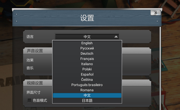 5、汉化方法:进入游戏后点击右上方的“齿轮”按钮,在如下图所示的位置处选择中文即可!