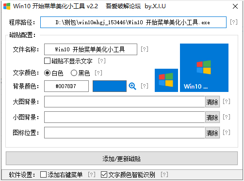 1、大图背景和小图背景都可为空。如果其中一个为空,另一个有图片文件,那么软件会互相补足的,无需拖放填入两次(大图和小图)。另外,图片文件也支持直接拖入到磁贴预览框。