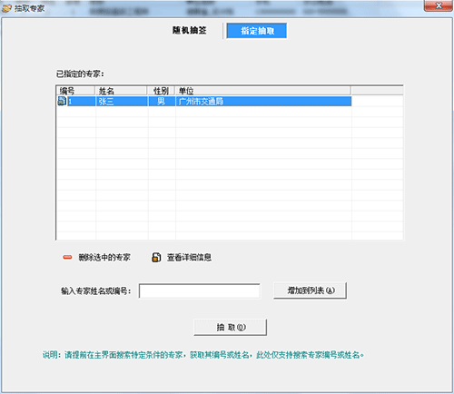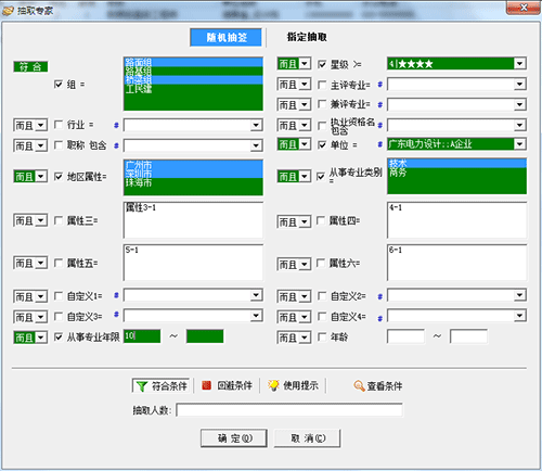 1、可以方便地从评标专家库中按多各种组合条件随机抽取指定数量的专家