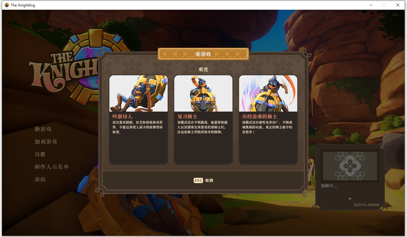 6、返回主菜单,开始新游戏,选择游戏难度,支持吟游诗人、见习骑士、历经沧桑的骑士三种难度;