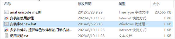 1、在本站下载并解压好压缩包后,双击文件夹中的“安装字体new.bat”就可以开始运行安装程序了;