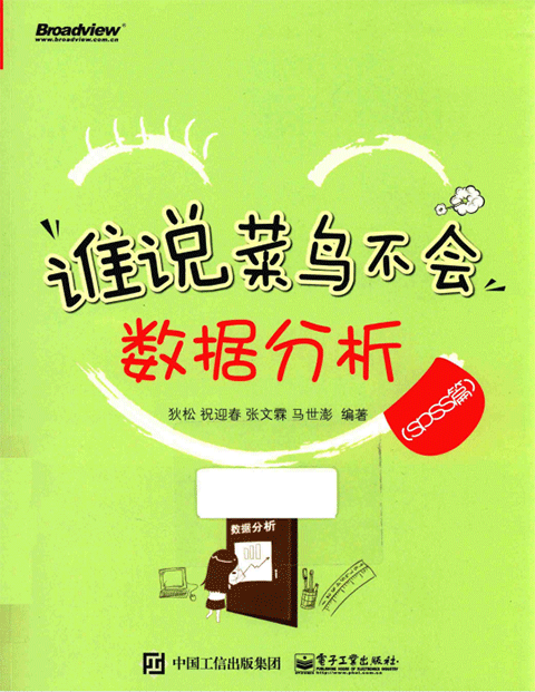 谁说菜鸟不会数据分析spss篇是一本像EXCEL一样简单,一看就懂的SPSS数据分析实战书籍,由狄松等人编著。本书从解决工作中的实际问题出发,总结并提炼工作中SPSS 经常用到并且非常实用的数据处理、数据分析实战方法与技巧。全书力求通俗易懂地介绍数据分析方法与技巧,在不影响学习理解的前提下,尽可能避免使用晦涩难懂的统计术语或模型公式,如需了解相关的统计学知识,可查阅相关的统计学书籍。
