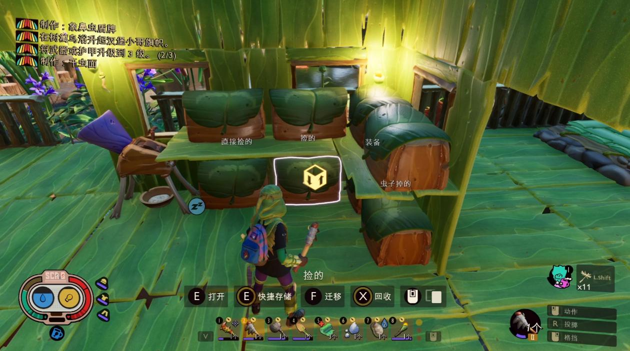 搭建避难所首选高处,像篱笆区域,这里能有效避免地面昆虫的直接袭击。搭建时,先用草茎制作框架,再用树脂进行加固,增强结构稳定性。为方便上下楼,可制作蹦床安置在避难所入口。蹦床制作材料简单,只需草茎与蜘蛛丝,蜘蛛丝可从蜘蛛网上收集。如此一来,不仅节省搭建楼梯的材料,还增添了一份趣味与便捷。