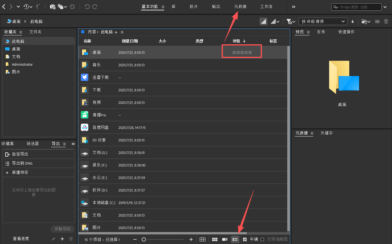 Adobe Bridge 2026怎么给文件评级