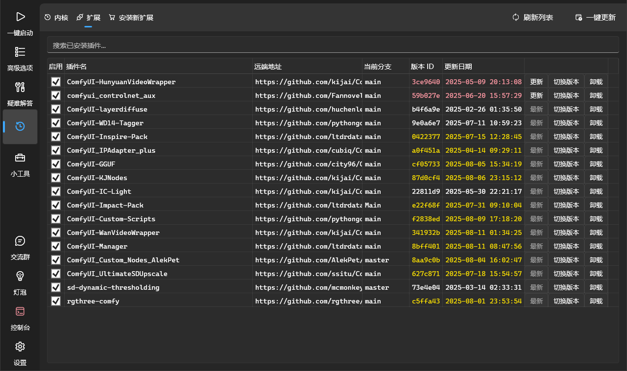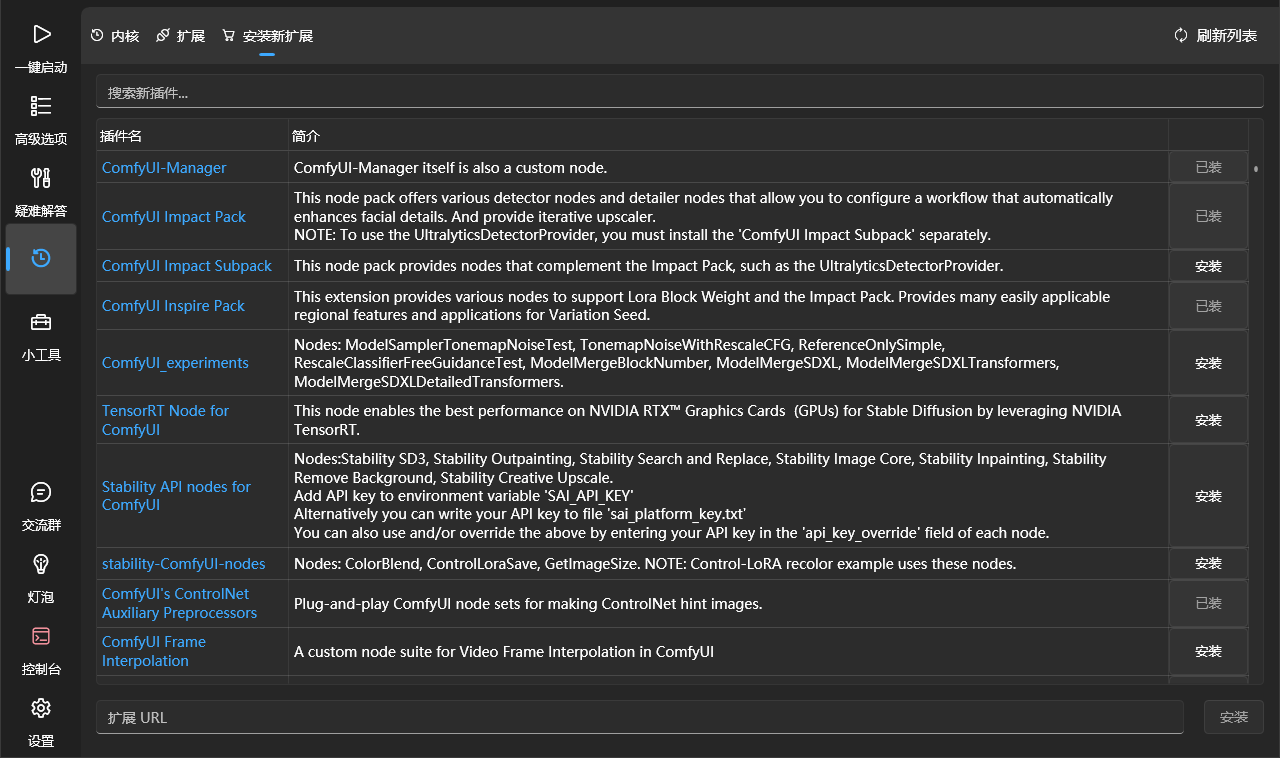 6、启动器目前支持插件安装,如果大家以后安装自定义节点也可以直接在启动器内解决。