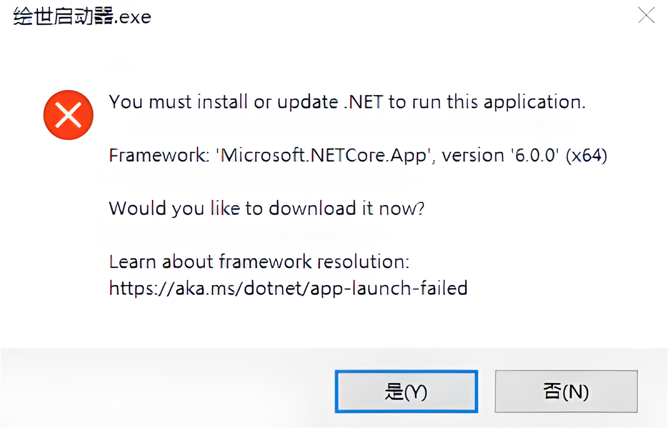 3、如果打开的时候显示下图的提示框,那么就点击【是】,下载.NET框架。