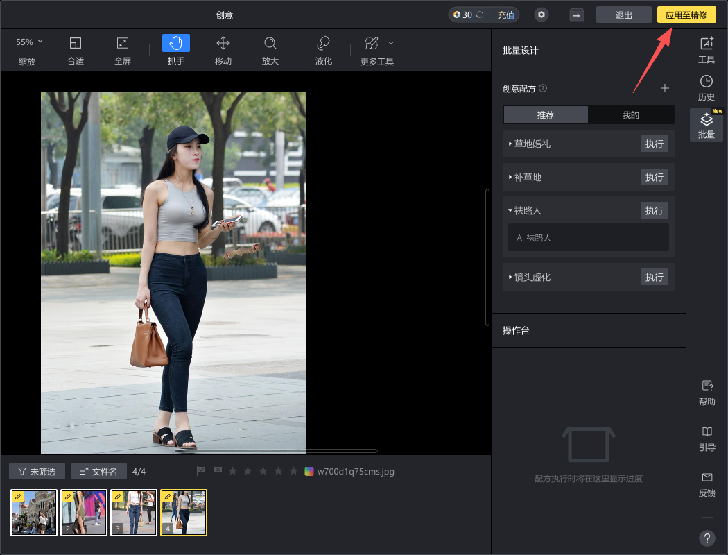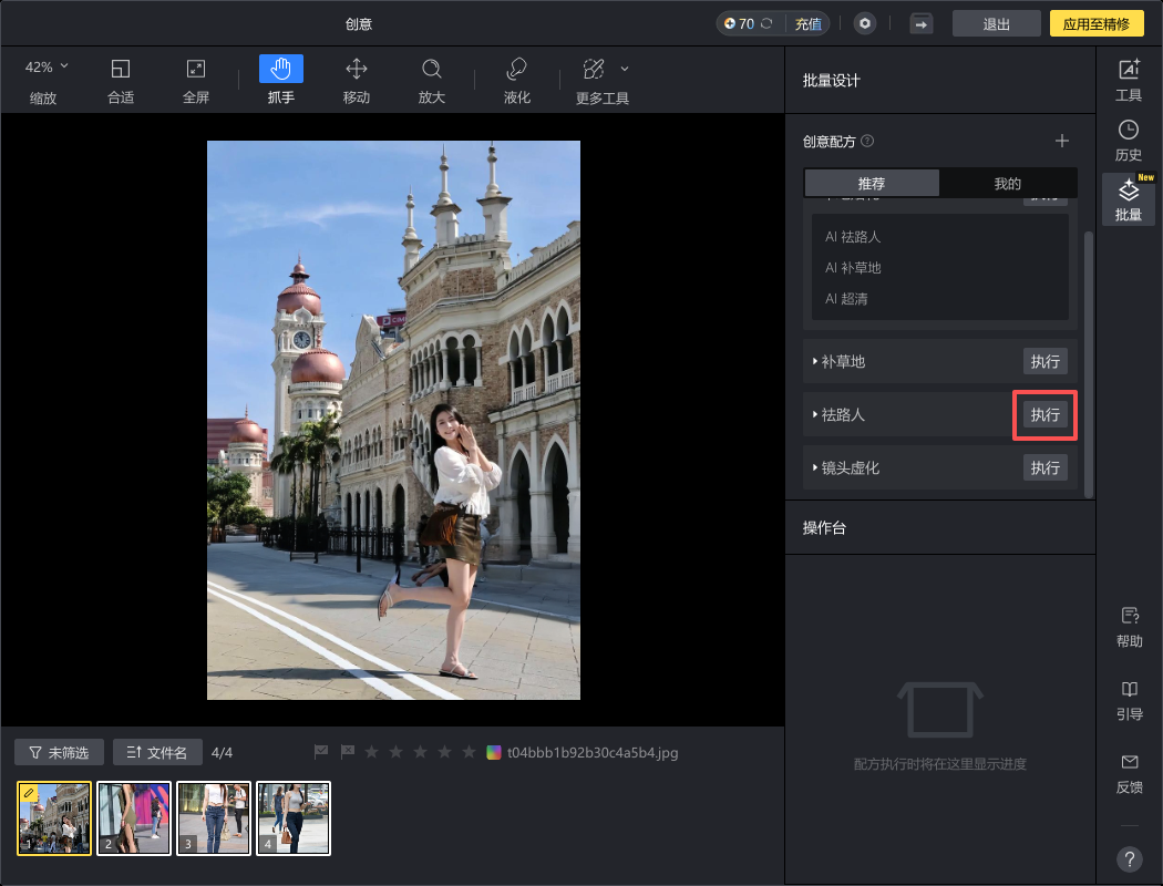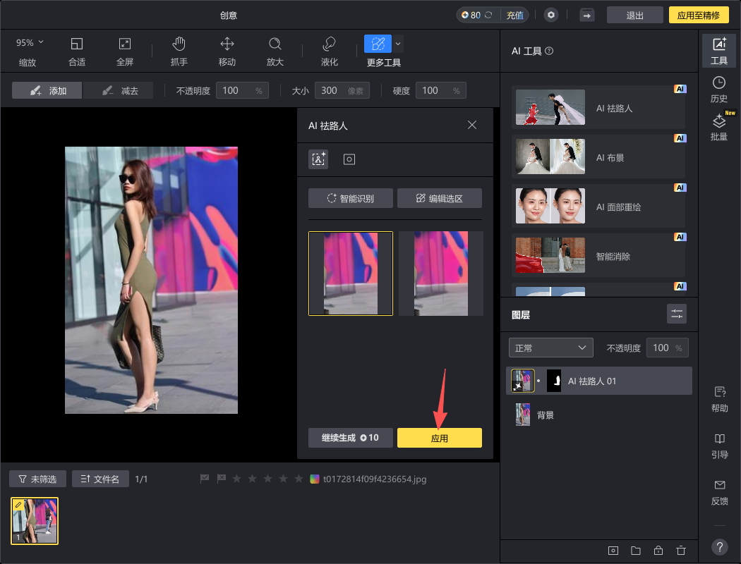 4、点击屏幕右侧的“AI祛路人”。