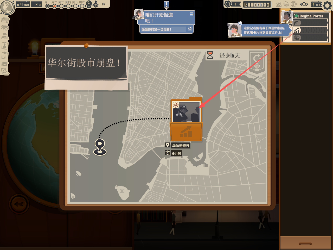 5、将屏幕右侧的“记者”拖拽到“事件”标识中,随后等待记者对事件的调查。