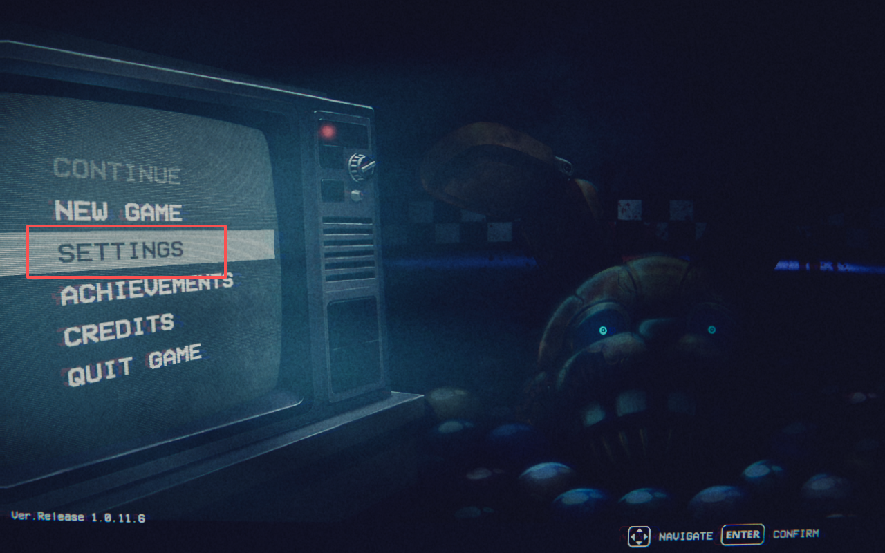 1、在玩具熊的五夜惊魂陷落球池游戏主界面点击屏幕左侧的“SETTINGS”,进入设置界面。