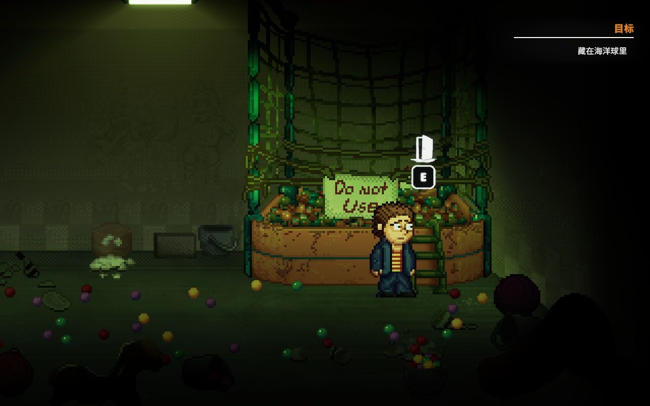 5、进入后,靠近海洋球池,随后点击“E”键进入。