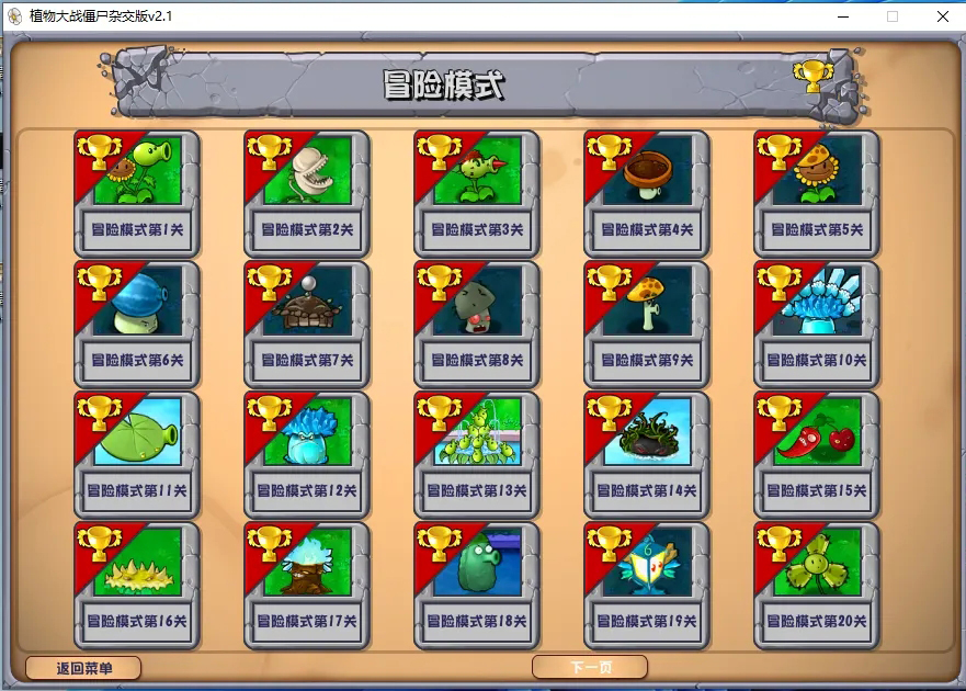 植物大战僵尸杂交版是知名同人游戏作者潜艇伟伟迷根据植物大战僵尸原版魔改而来的版本,此版本中的多种植物将融合在一起,以及也会有着全新种类的各种僵尸来让玩家们感受全新的游戏乐趣和挑战。而有需要植物大战僵尸杂交版全通关存档的小伙伴们欢迎前来本站免费下载使用吧。